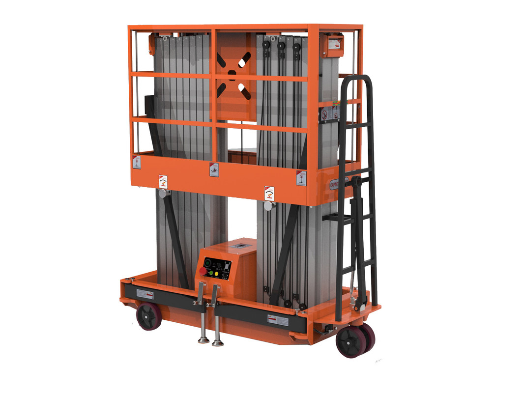 DLシリーズ 8.0m ~ 16.0m 12人の作業員を収容できる広いプラットフォーム 2補助プラットフォーム降ろし機能 3鍵のスイッチをロックして セキュリティを強化する 4簡単に組み立てられる安全フェンス 5業界で最も頑丈なマストだ 6耐久的で堅牢なベースシステム
